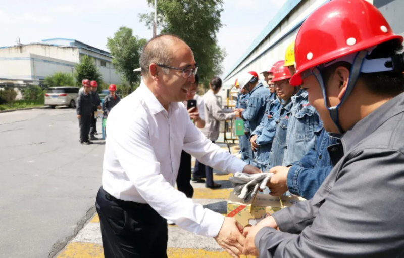 慰問現(xiàn)場,吳有禎與生產(chǎn)一線職工親切交流,詳細詢問大家的工作環(huán)境、勞動保護措施及防暑降溫落實情況,對職工們在高溫天氣下堅守崗位、辛勤付出的精神表示衷心感謝。他指出,炎炎夏日里,廣大干部職工搶抓生產(chǎn)黃金期,不懼酷暑,揮灑汗水,用實干實績?yōu)楝F(xiàn)代化新青海建設(shè)作出了貢獻。隨后,吳有禎一行將防暑降溫用品送到職工手中,同時叮囑公司負責(zé)人,要高度重視高溫天氣下的安全生產(chǎn)和職工勞動保護工作,合理調(diào)整作業(yè)時間,改善勞動條件,確保職工身體健康和生產(chǎn)安全。